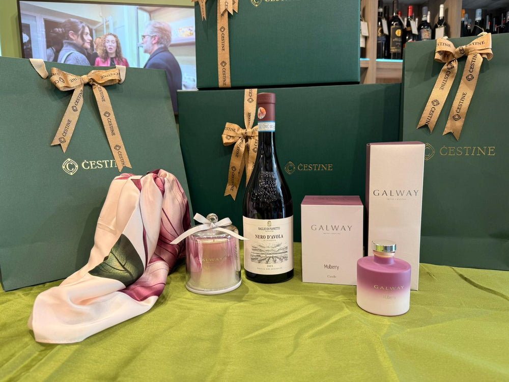Deep red wine with scented candles, crystal decor, and diffusers for a rich sensory festive experience. Includes: BDP Nero D Avola DOC (75cl), Galway Diffuser Mulberry, Galway Crystal Scarf Mulberry Polyester, Galway Candle Mulberry, Small Premium Gift Box, Packaging & Ribbon.