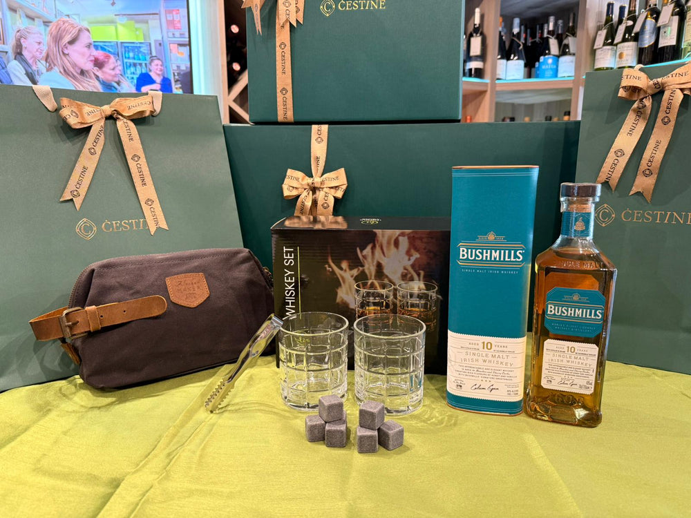 Whisky connoisseur gift with travel kit and elegant presentation, perfect for sophisticated holiday celebrations. Includes: Bushmills Single Malt Whisky 10YO (70cl), Giftset Whisky Ice Cubes Leopold Vienna, Alaskan Travel Kit Black, Small Premium Gift Box, Packaging & Ribbon.