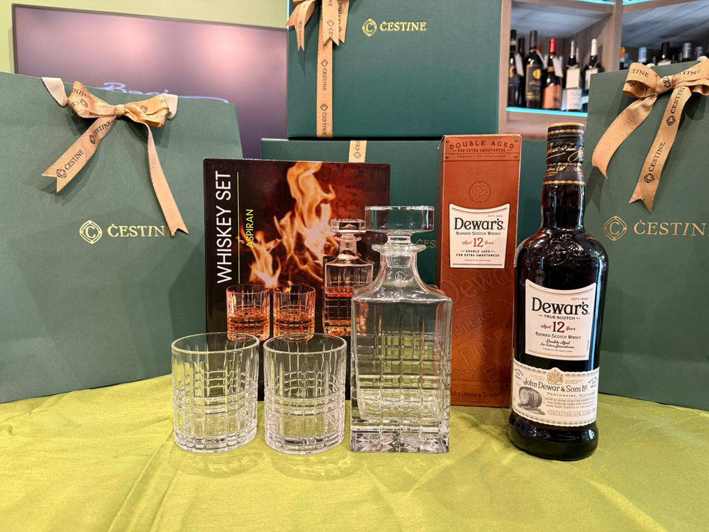 Warm whisky and elegant karaf set combine to create a memorable and sophisticated holiday gift. Includes: Dewars True Scotch 12YO Whisky (70cl), Whiskey Karaf Set Aspiran, Small Premium Gift Box, Packaging & Ribbon.