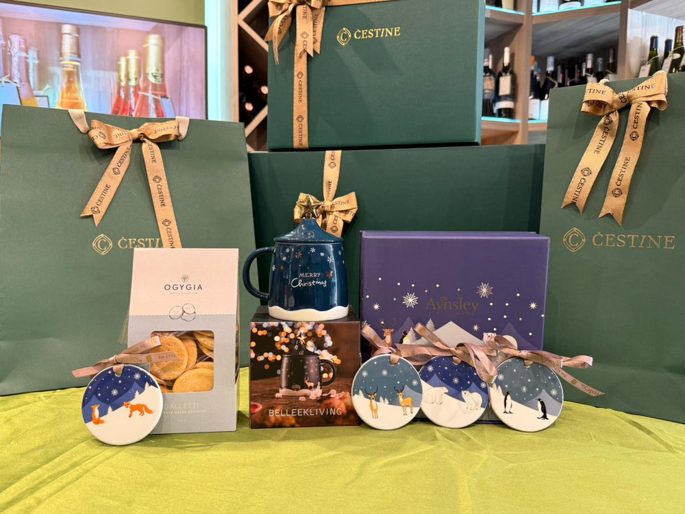 Cozy winter charm captured with festive ornaments, lidded mugs, and delicate water biscuits for a thoughtful gift. Includes: Aynsley Winter Animals Flat Ornaments (Set of 4), Aynsley Christmas Winter Scene Lidded Mug, Ogygia Galletti Water Biscuits, Small Premium Gift Box, Packaging & Ribbon.